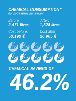 The new and environmentally friendly pot washers from Granuldisk help Fazer a step closer to the goal by cutting water and chemical consumption by half and staff spend 2 hours less in the pot wash every day.