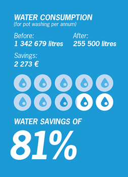 La solution Granuldisk a permis au restaurant Gundel de réduire sa consommation d’eau de 81 %