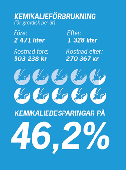 Med de nya och mer miljövänliga disklösningarna från Granuldisk och en nära nog halverad förbrukning av vatten och kem kommer Fazer ännu ett steg närmre sitt mål. De kan dessutom glädjas åt mindre slit och att spendera 2 timmar mindre tid i diskrummet varje dag.